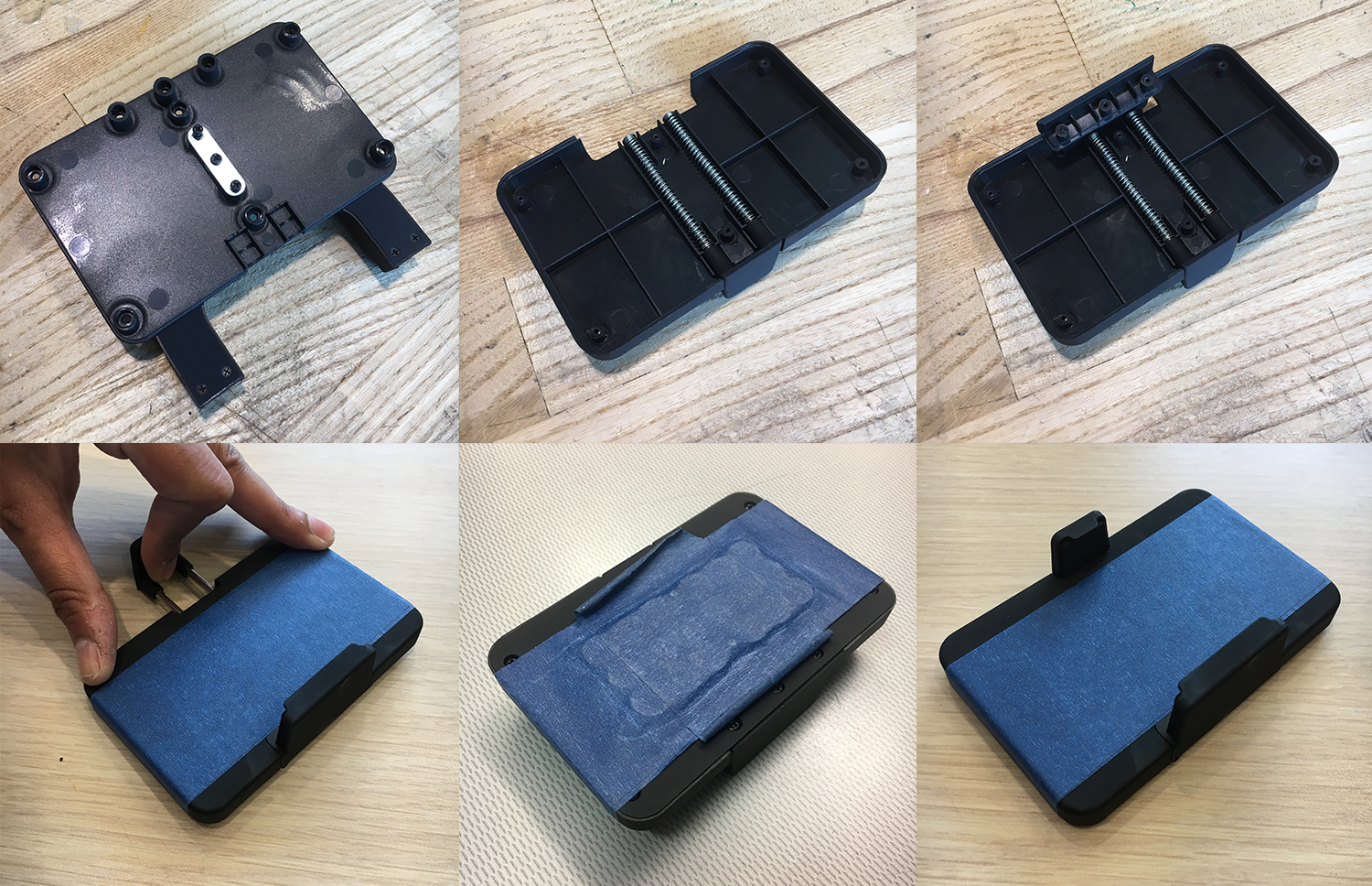 Going back to earlier prototypes, Hook Support and Strap Support, I decided to incorporate a clamp feature. Ultimately, the user test displayed that aesthetically, the micro suction prototype was preferred because it was smaller. However, the clamp prototype was more secure, gave a better sense of security to the users, and provided auditory feedback while attaching to a surface.